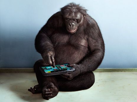 Today's blog is another little something I gleaned from Millionaire,Ape Apps. Apparently there is more than one research project ongoing with different members of the primate family,but the one I am exploring today is being conducted with bonobos (a bonobo is similar to a chimpanzee but a separtate species). The most recent work is being done with a Motorola Xoom tablet with special icons that allow the animals to communicate. Through the tablets they can ask questions,make requests and sometimes tell jokes. What I found to be the most impressive about this work is the way it was being applied to the animals general health and well being. They are able to find ways to make their living areas more comfortable and in one case though there was no lexigram for toothache the researcher typed in the word and a new symbol appeared to the bonobo along with a mechanical voice that said the word,which the animals then connected to the pain it felt.