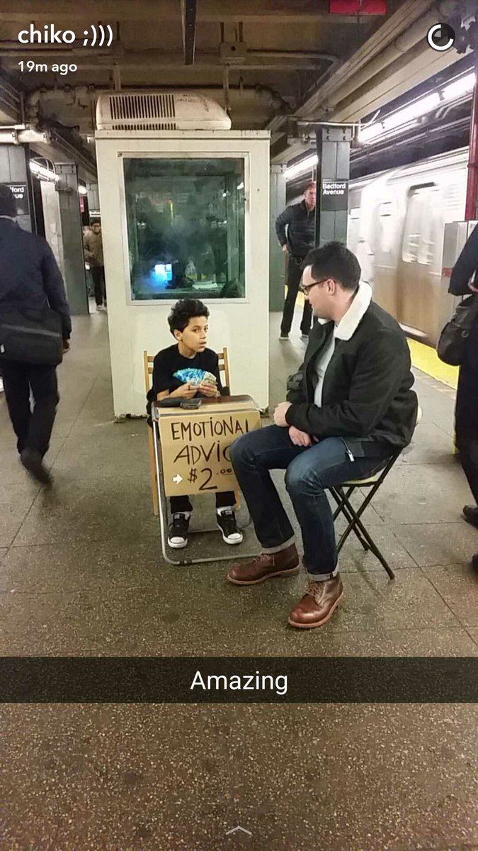 It is never mentioned where 11 year old Ciro Ortiz got the idea to hang his shingle out in a subway station but I am reminded of Lucy van Pelt from Peanuts and her booth offering psychiatric help for $.05. Sixth grade Ciro took a more refined approach,offering "emotional advice" for $2. His first day he was nervous and unsure of himself but in no time he was enjoying the work and making friends. He says the most common thing the adults talk to him about are changes,he tells them "We have to accept change,life is always changing". On a busy Sunday he makes up to $50 in two hours,and who would be easier to unload an adult's woes on than a child and feel good about doing it when you pay them $2? This kid has it going on!