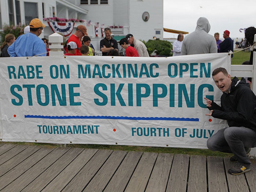 The 51st Mackinac (Michigan) Island Annual Stone Skipping Competition took place on July 4th. There are two categories,amateur and professional. Among the pros was a Guinness Record holder who skipped a stone an amazing 88 times! The amateur winner won a Grand Hotel goblet stuffed with $200 for skipping 20 times. Though the Mackinac competition is the longest running there are also competitions in Montana and Alaska. I remember being thrilled if I could skip a stone 4 times and that happened due to finding the perfect stone.